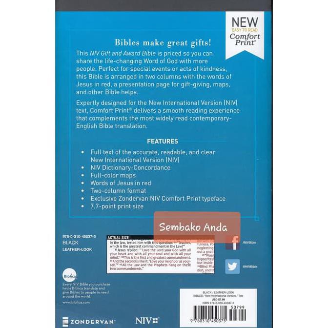 Niv Gift And Award Bible Leather Look Black Red Letter Edition